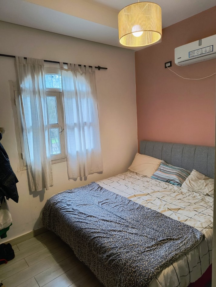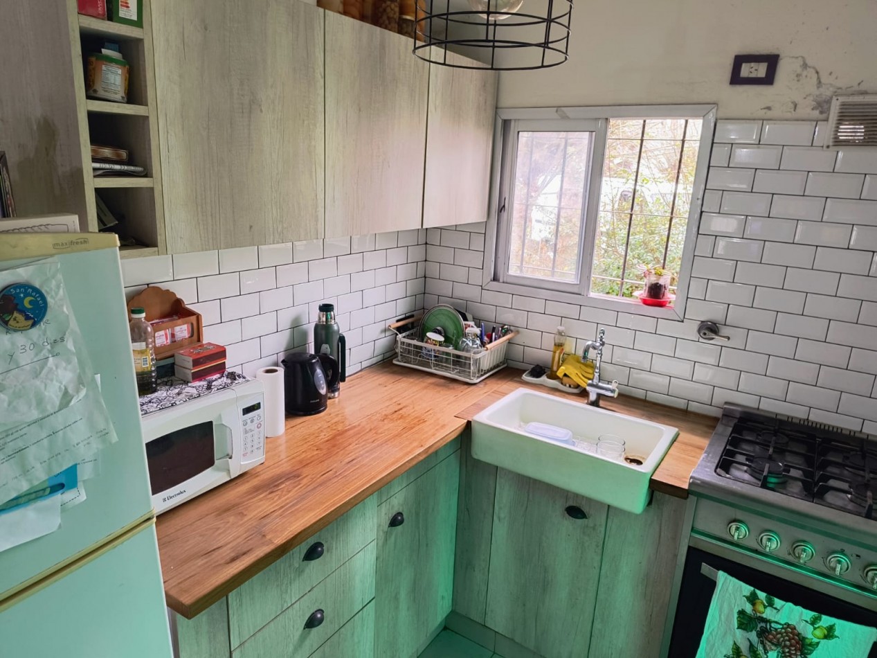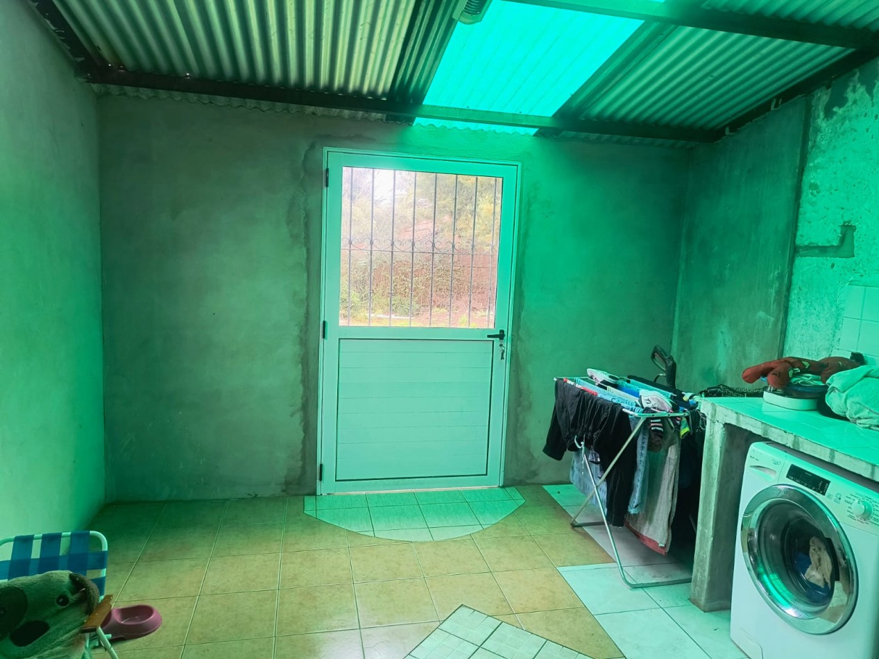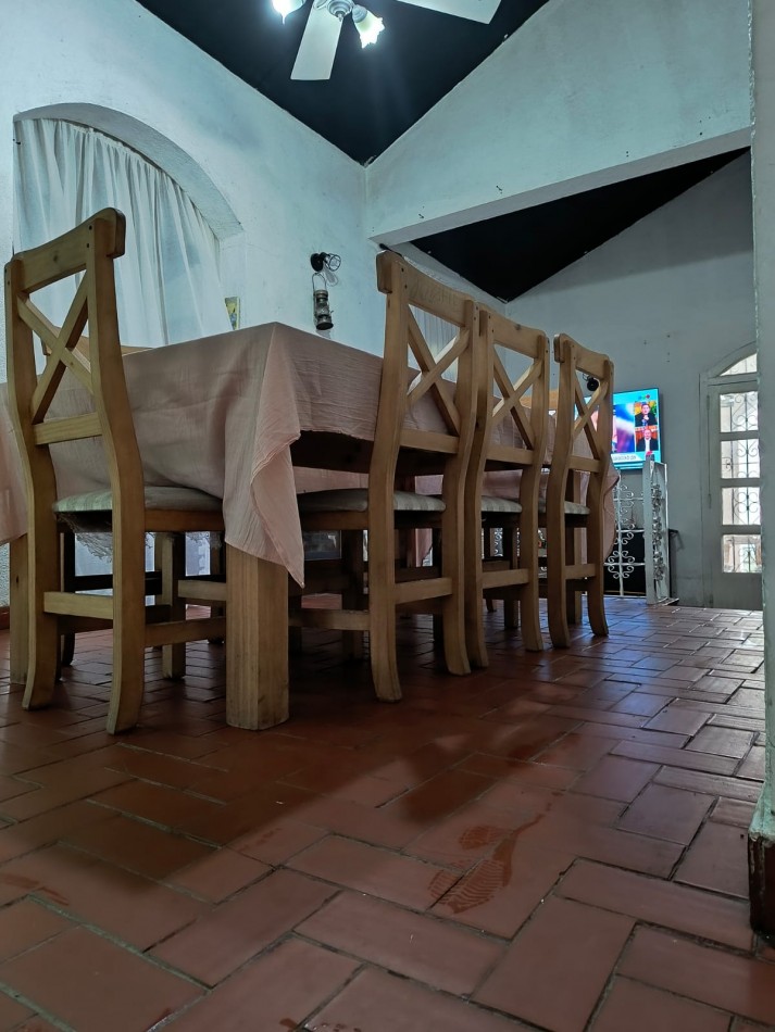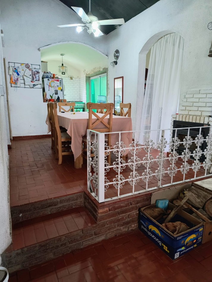 Sobre dos parcelas que suman 600m2 con 20m de frente se emplaza la vivienda construida con bloques de hormigón de aprox 100m2 cub. Compuesta de recepción con amplios ventanales y living en desnivel, comedor con hogar a leña, ventilador de techo, amplio lavadero, sector de cocina con mesada de madera, alacena bajo mesada y bacha, pasillo distribuidor que lleva a baño el cual posee bañera con cañería de ducha externa y ba y dos dormitorios con placares y aberturas de madera. Galería, amplio parque, doble acceso vehicular dado que no se encuentra edificada sobre medianeras.
