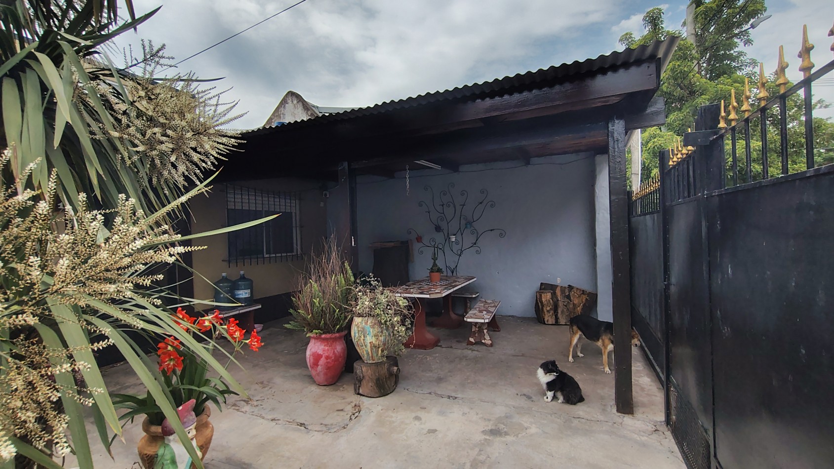 Galería amplia techada con parrilla y detalles de terminación.
